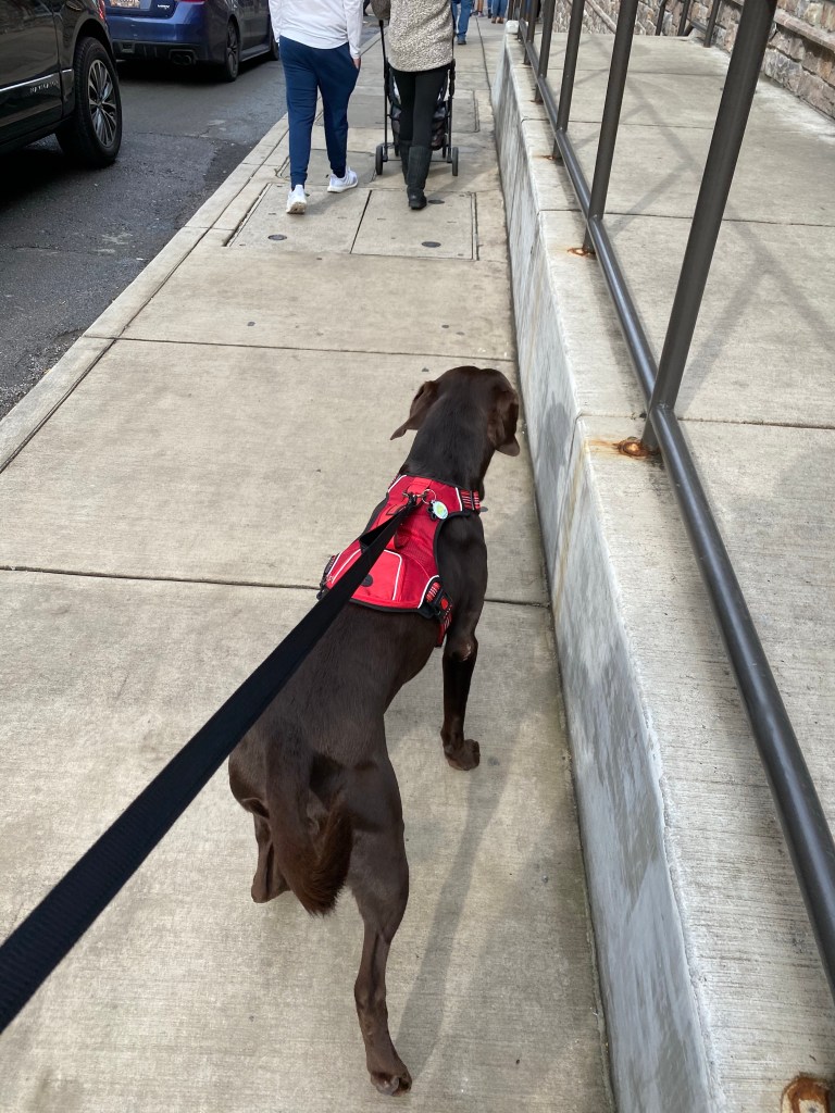 Bandit was greeted by so many different people! Everyone was so kind to him (I realized I picked the wrong color harness but it’s one of our favorite colors so we can’t win them all).