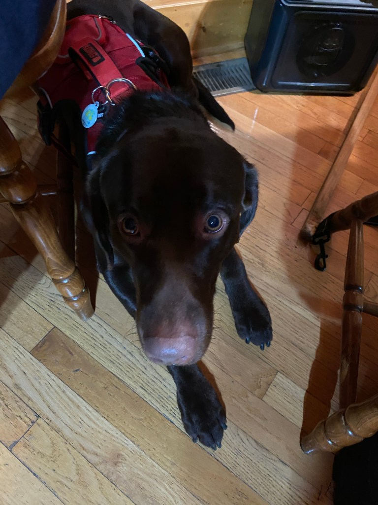 Keep in mind, Bandit is a quiet but curious pup and he lets (almost) everyone pet him. So I decided our next collar is going to say “Not a Service Dog, Please Pet”.